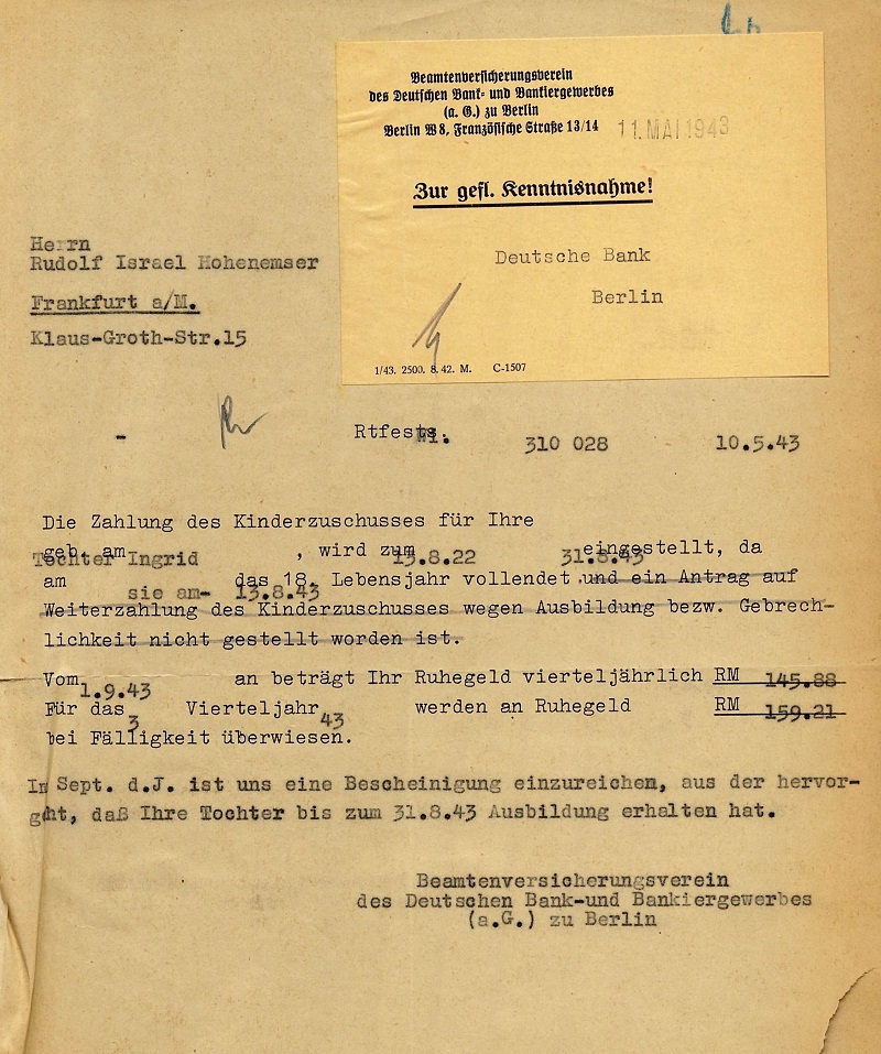 15.06.1926 - 30.09.1928 Deutsche Bank Frankfurt branch (apprenticeship) |