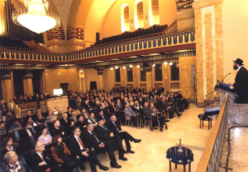 Am 6. Dezember 2010 war die Historische Gesellschaft in der Frankfurter Westendsynagoge zu Gast, deren 100jähriges Bestehen in diesem Jahr gefeiert werden konnte. Als einziger bedeutender Frankfurter Synagogenbau überstand sie NS-Zeit und Zweiten Weltkrieg. Zur Begrüßung der mit über 400 Teilnehmern sehr gut besuchten Veranstaltung sprachen Prof. Salomon Korn, Vorsitzender der Jüdischen Gemeinde Frankfurt am Main und Vizepräsident des Zentralrats der Juden in Deutschland, und der Erste Vorsitzende der Historischen Gesellschaft Dr. Clemens Börsig. Im Anschluss führte Kantor Shlomo Raskin in die Bedeutung des Chanukka-Festes ein, das an die Einweihung des zweiten Tempels in Jerusalem erinnert, und entzündete Chanukka-Kerzen. Dr. Heinz Schomann, ehemaliger Leiter des Frankfurter Denkmalamts, erläuterte die Baugeschichte und das städtebauliche Umfeld der Westendsynagoge. Am Ende der Veranstaltung hatten die Teilnehmer die Möglichkeit zu einem Rundgang durch den eindrucksvoll ausgestatteten Sakralbau.